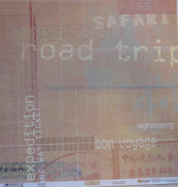 12 x 12 - Patterned - Adventure - Travel - Travel Words (Road Trip, Bon voyage)