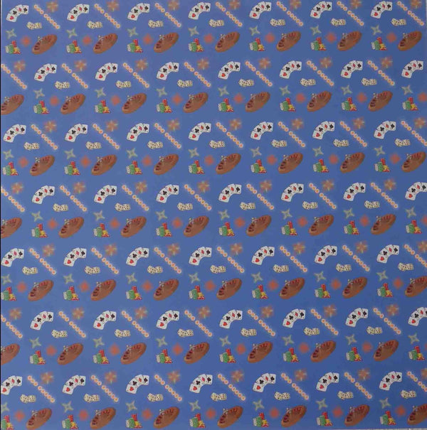 All the fun of a James Bond casino movie scene - cards, roulette wheel, dice, chips.