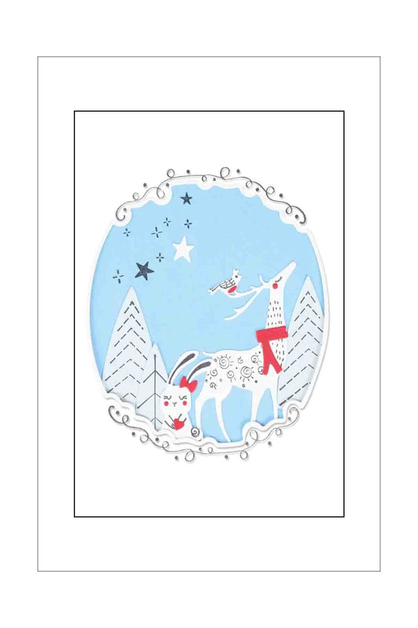 Set of dies with Stencil for easy colouring for very cute reindeer and Christmas tree card.