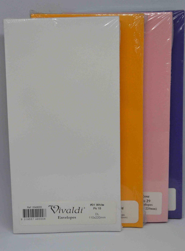 Envelopes - DL - Coloured and White - Vivaldi Plain - 15 Pack - Click here to choose colour