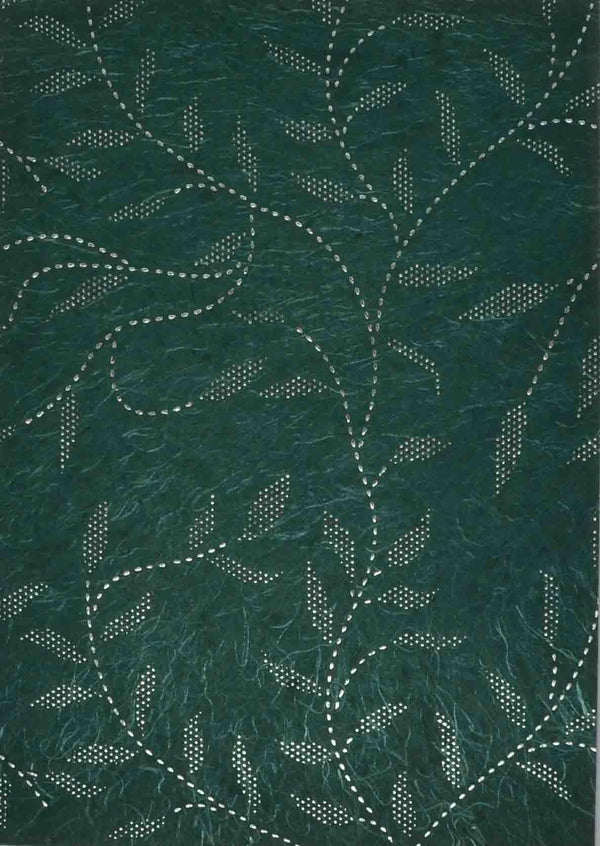 A4 - Patterned - Chiffon Precious Metals (Embossed) - Leaves and Stems Forest Green / Silver