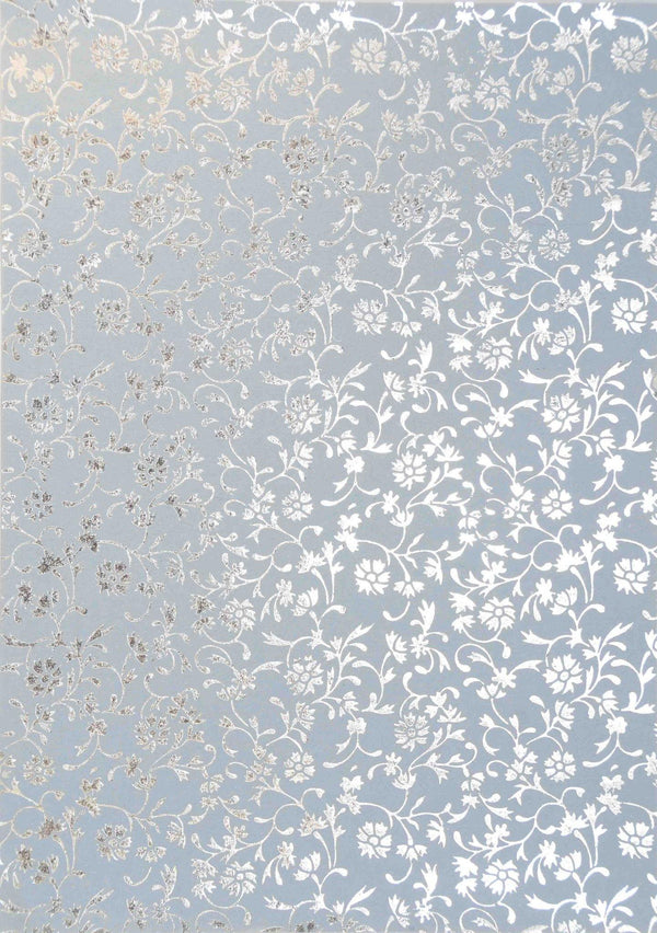 Handmade, textured paper with metallic floral foil design.