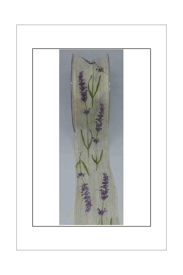 Wide woven edged calico with lavender flowers