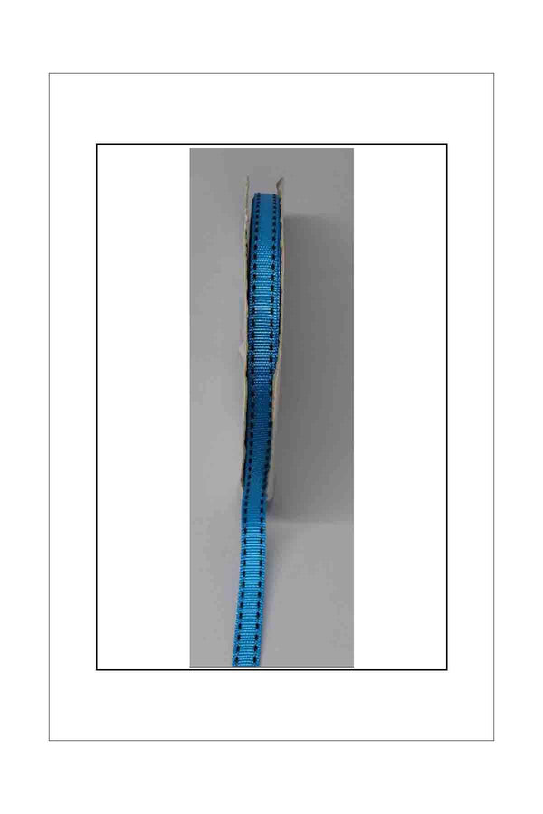 Patterned Ribbon - Stitched Grossgrain - Blue/Black