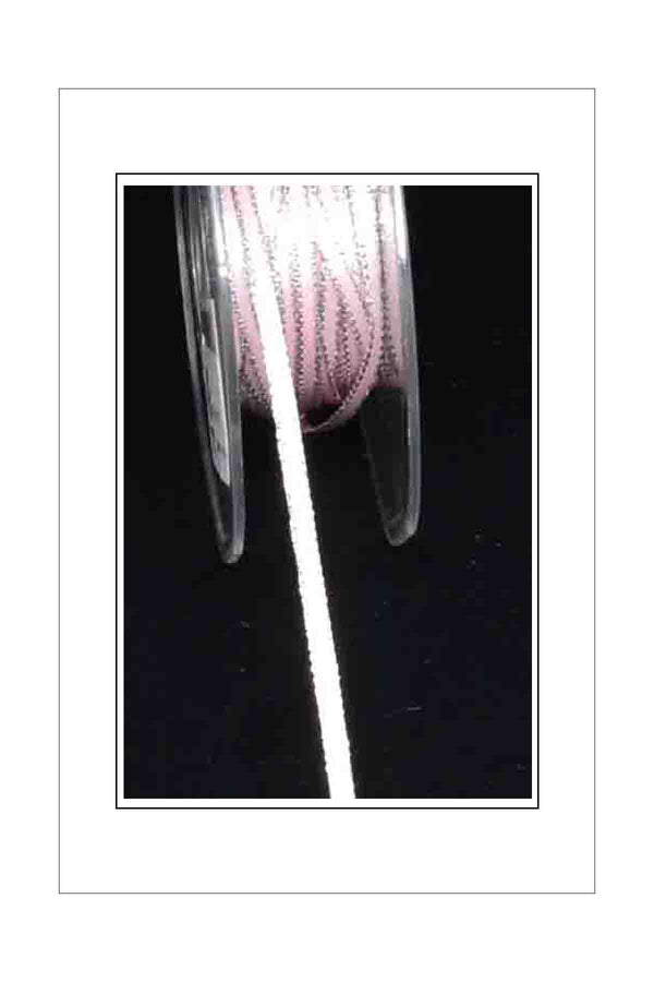 Satin Ribbon, Double Sided, Pale Pink Silver Woven Edge