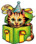 Happy cat popping out of a boxed present.