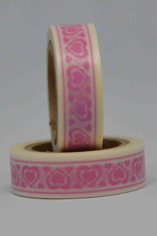 Washi Tape - Hearts - Pink on White