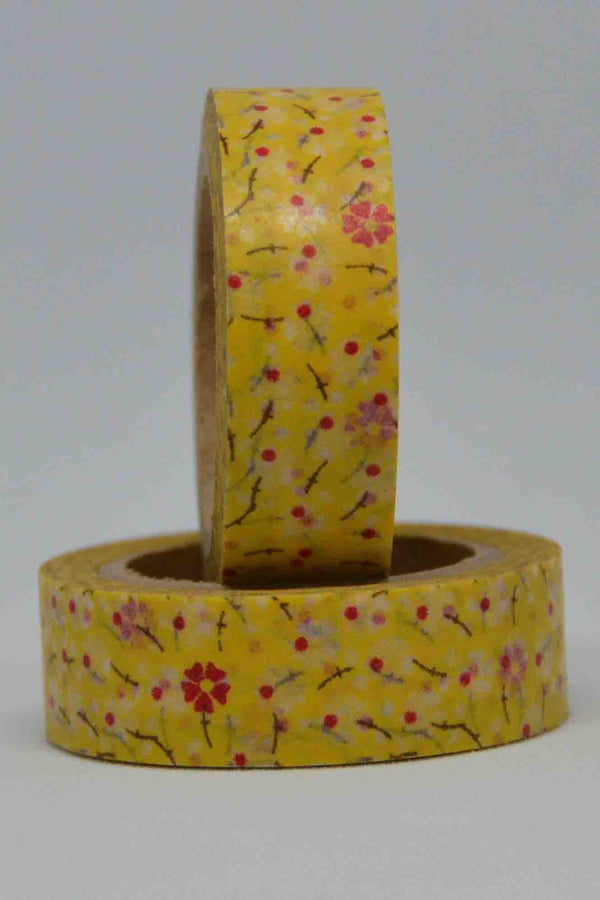 Washi Tape - Summer Flowers - Red, White on Yellow