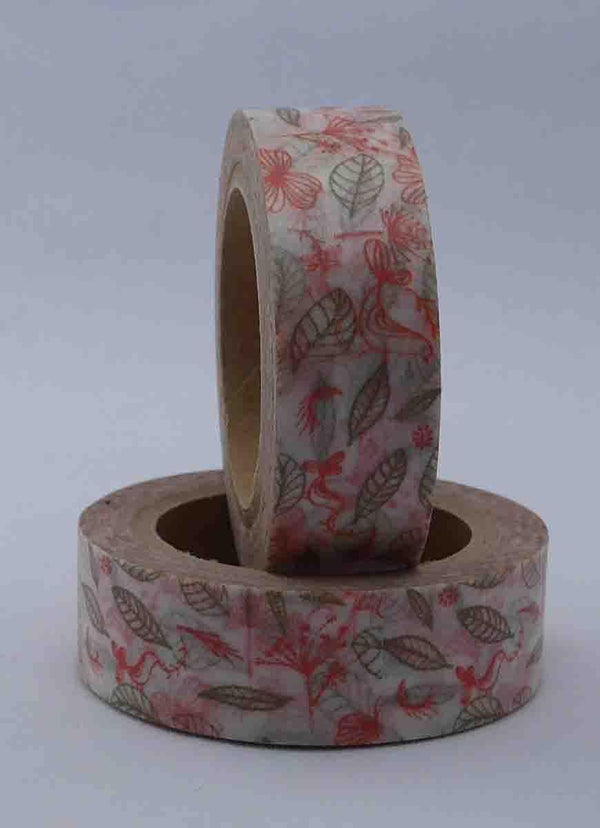 Washi Tape - Flowers/Leaves - Watermelon / Taupe on White