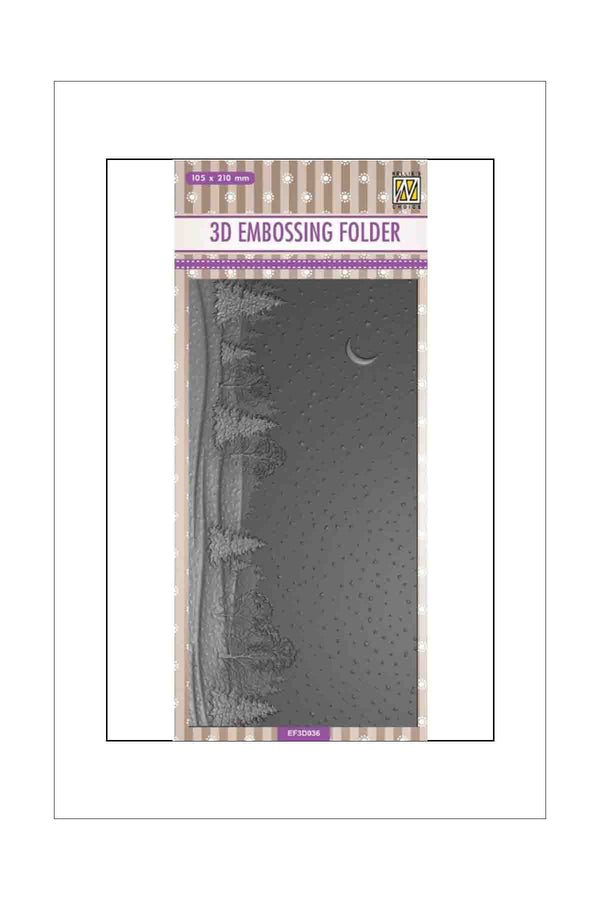 This moonlit alpine snowy scene pops from this 3D slimline embossing folder.